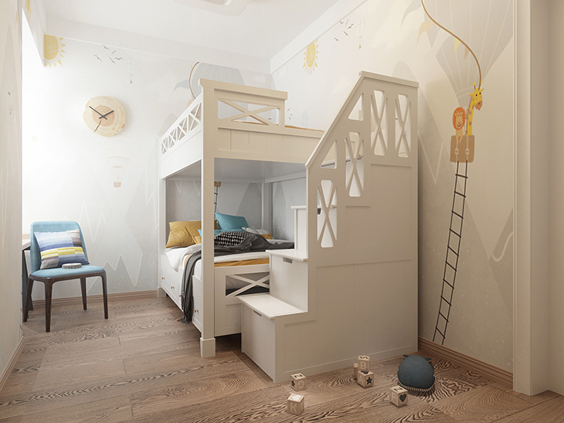 充滿童真的壁畫的兒童房,溫馨滿滿。北歐元素的高低床,實用而美觀。