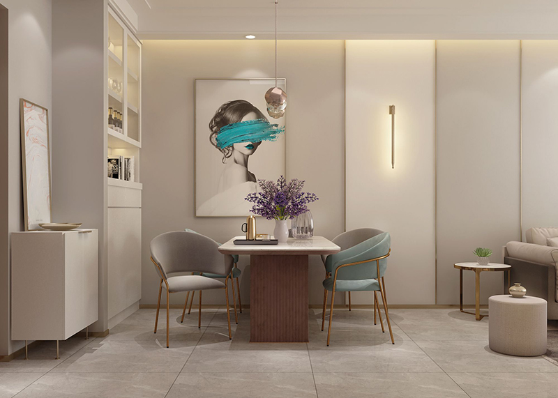 餐桌放在客廳的角落,暢享美食也兼顧藝術上的享受。