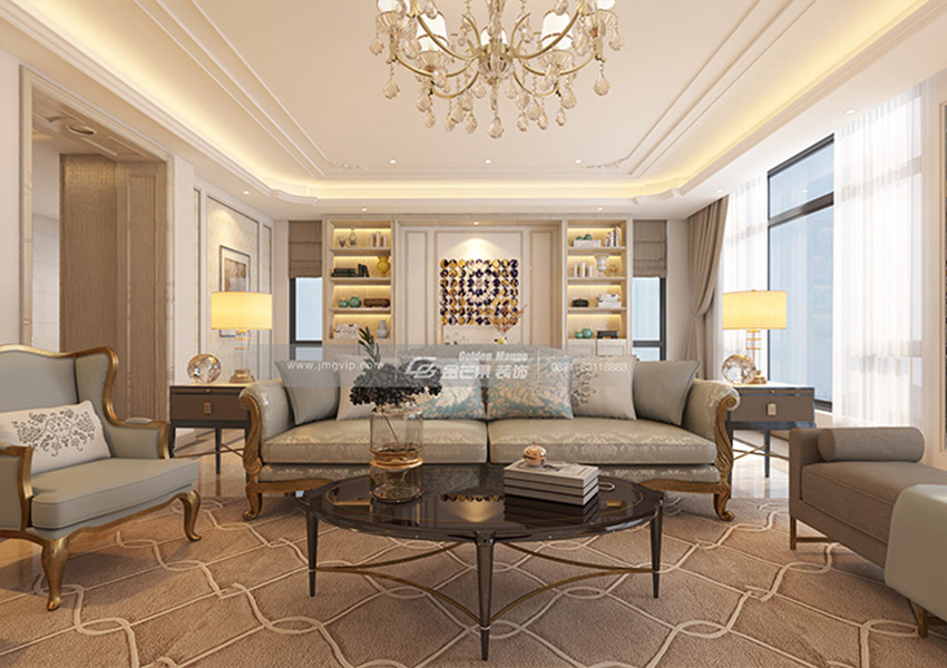 案例說明:這是一個運用簡歐風格的案例,摒棄了歐式冗余的裝潢,留有更多的視覺空間,視覺上更加寬敞、明亮。設計師對每個空間獨立的設計,有自己獨特的特色。在較大的空間下設計規劃的多樣性成為可能。整體奢華高貴,沒有過多的裝飾顯得尤為理性。以歐式獨特的白色系為整體色調,以燈光等元素渲染高貴、優雅的家居空間。