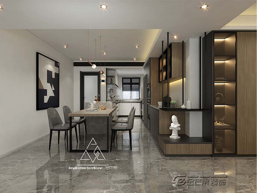 棕色的餐座椅時尚又實用,用簡單的裝飾為業主打造一個精致、簡潔的用餐空間。餐廳和廚房是開放區域,即增加空間可用性,又使房間變得溫馨、舒適。