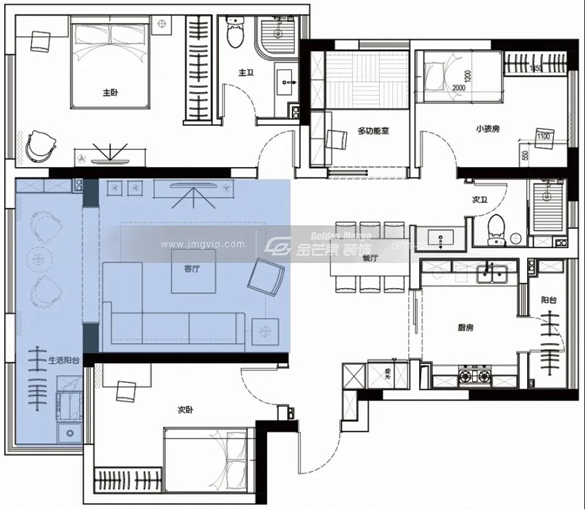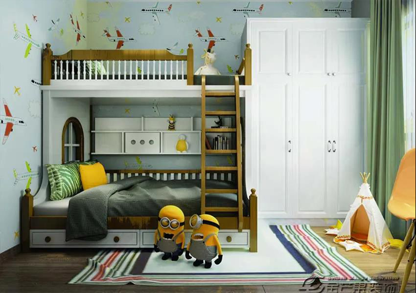 2、隔斷休閑陽臺,給兒童房足夠的學習空間,增加采光和通風;