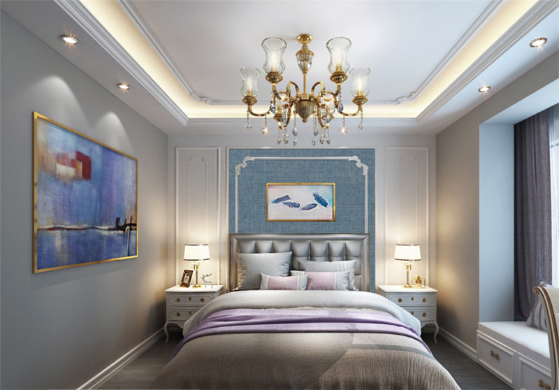 優(yōu)雅的紫色和床頭的銀色搭配,彰顯法式浪漫與風情。藍色營造清新淡雅的感覺。
