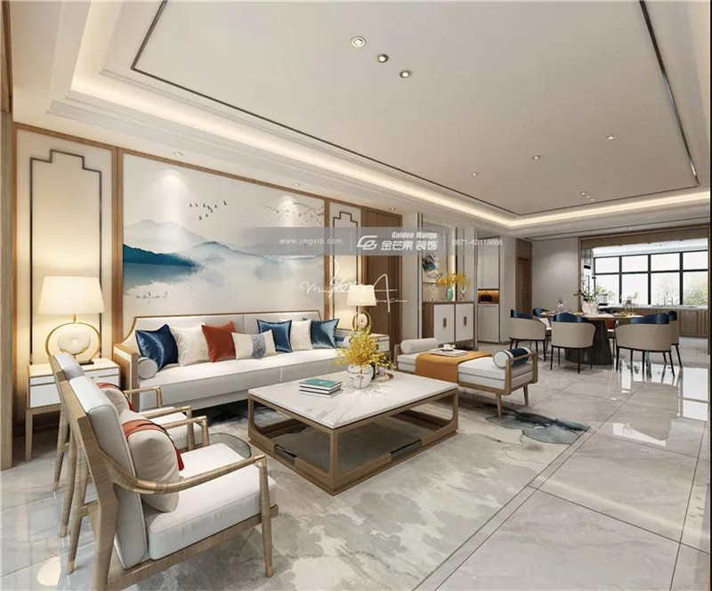色彩淡雅,格調(diào)高雅,怡然雅致的家居,讓心靈在裊裊升起的茶香中得到沉淀和釋放。中式的家具、線條、裝飾,營造中國風美韻。