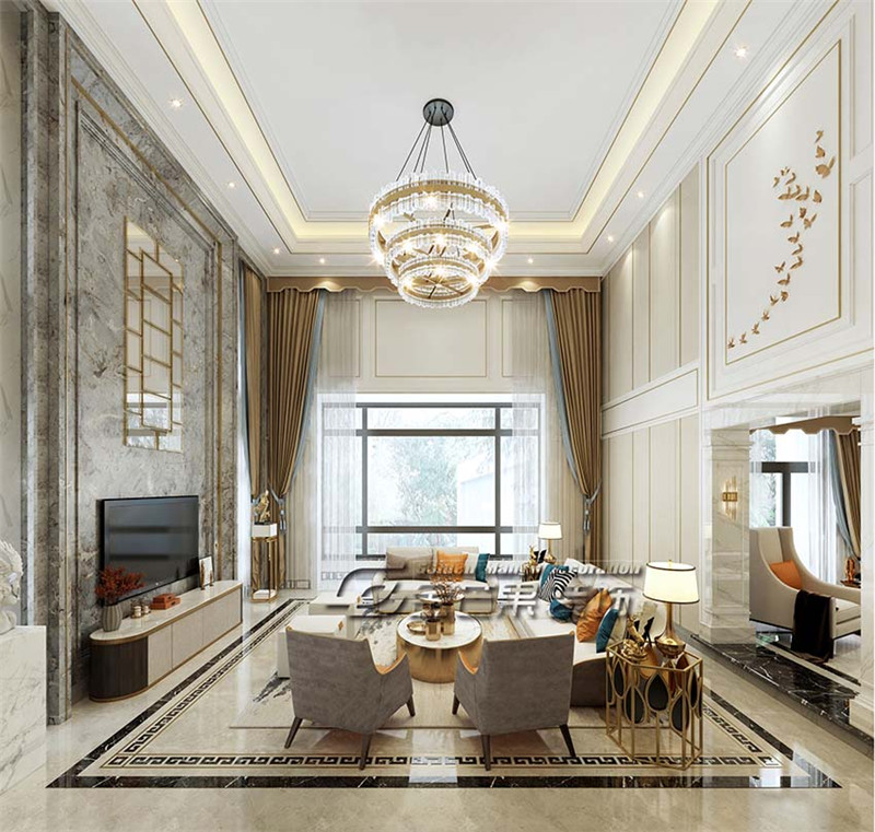 挑高的客廳設(shè)計(jì),入眼即是貴氣典雅的感覺(jué),營(yíng)造宮廷皇室般的尊貴感。