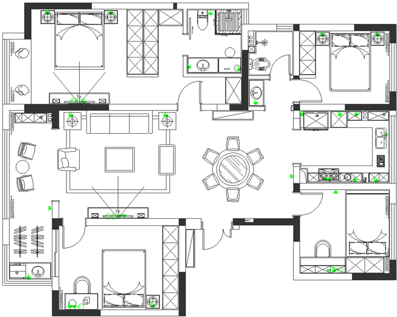 優點:戶型結構方正,四室兩廳兩衛,帶有兩個陽臺,每個空間的采光及通風都很不錯。