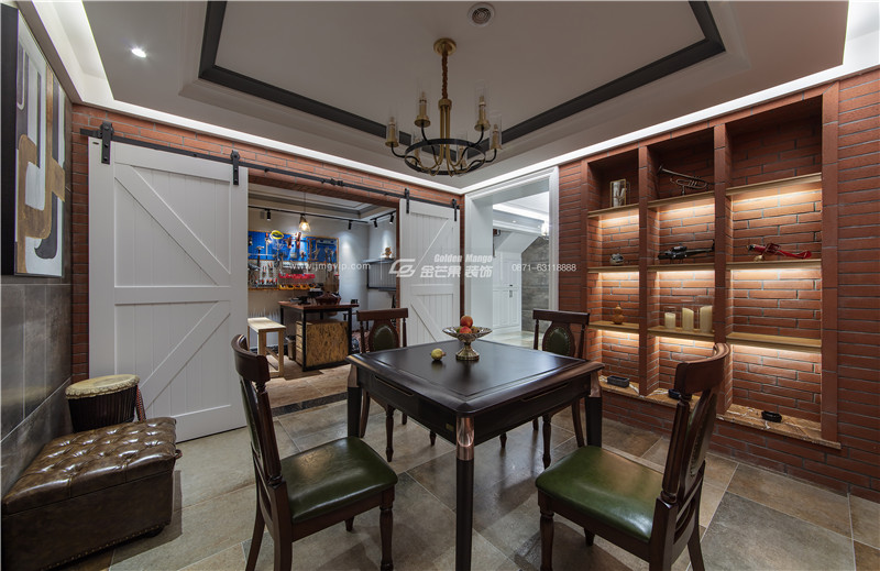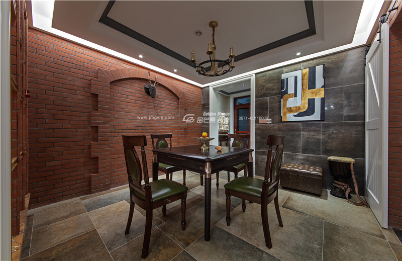 復(fù)古墻磚點(diǎn)綴綠色家具,不禁聯(lián)想到歐洲的街頭、小鎮(zhèn),頗有摩登、復(fù)古的韻味。
