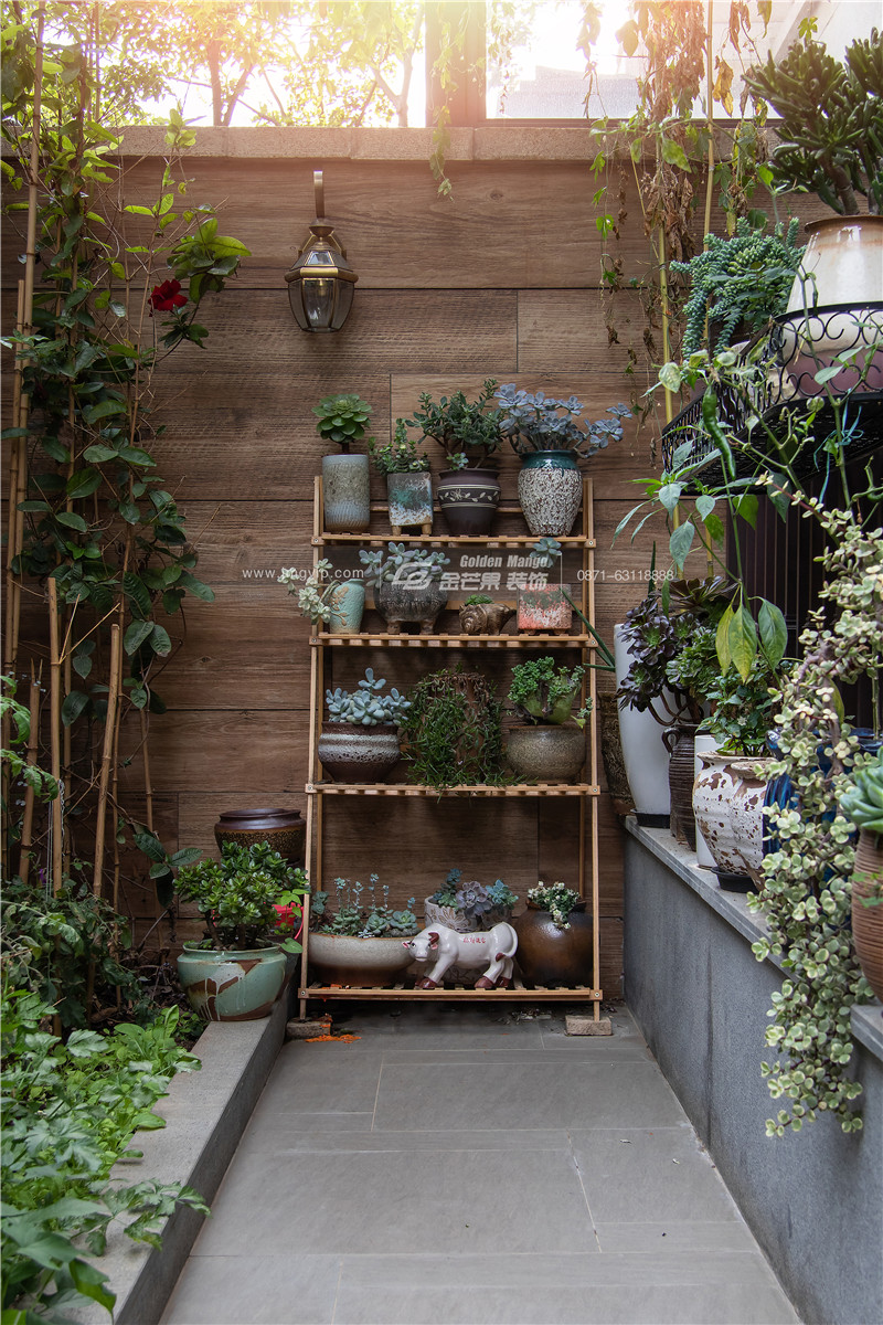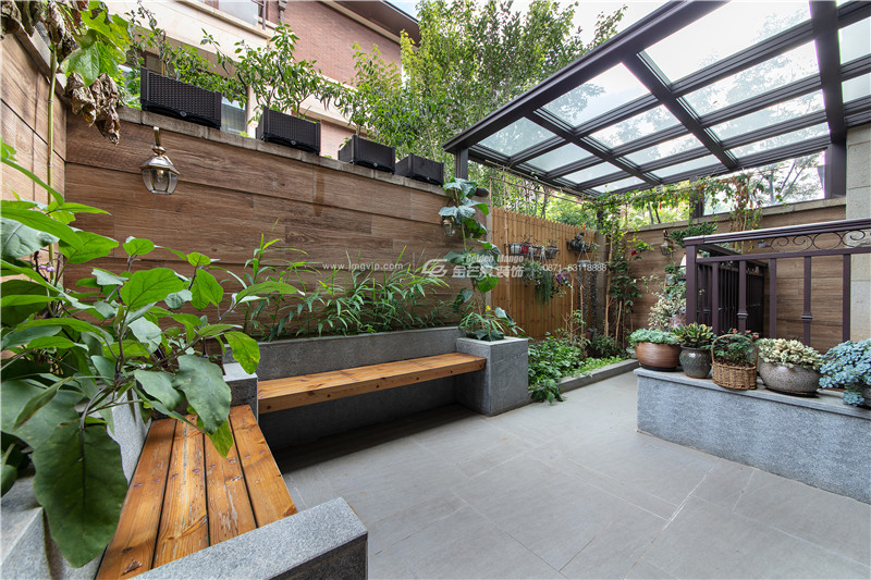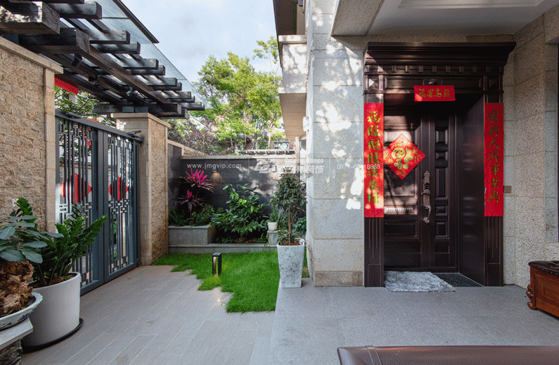 1樓入戶是一個(gè)有情致的小院子,綠植、草地、假山,獨(dú)擁一片山水,靜享逍遙自在。