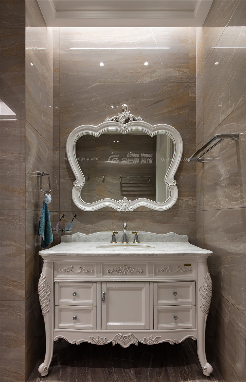 白色家具既典雅,又容易營造大氣、高潔的感覺,運(yùn)用白色柜體和臺盆,加上雕花的設(shè)計(jì),讓入浴晉升為一種奢華的享受。