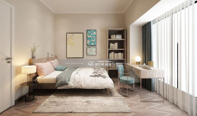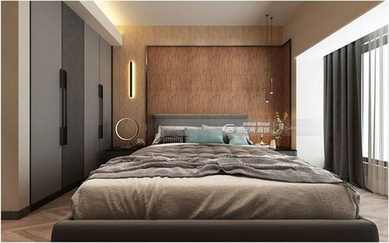 簡約大氣,端莊優(yōu)雅,靈動的燈飾和床頭背景墻的端莊結(jié)合,產(chǎn)生一種個性的時尚感,既沉穩(wěn),但不會沉悶。