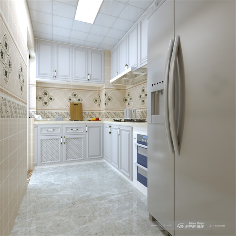 廚房上的花紋讓空間不再單調,白色的柜體明亮、簡潔,增加空間通透性,不會讓廚房顯得過于擁擠。