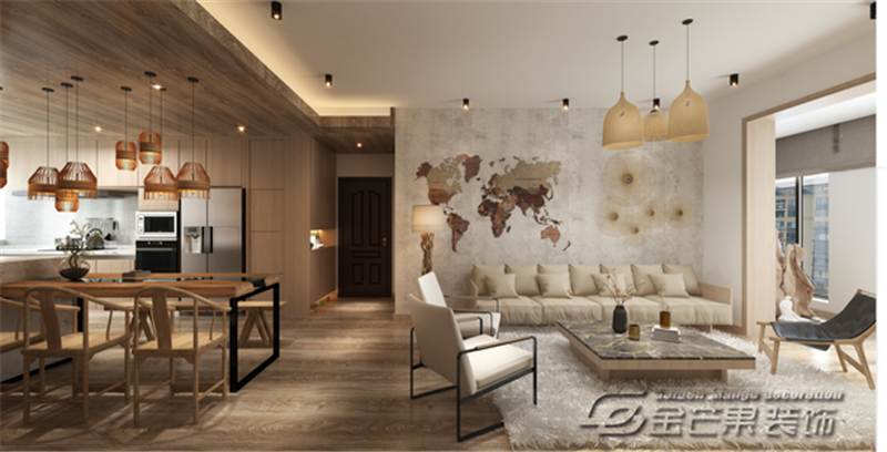 仍然運(yùn)用了大量的木材材質(zhì),個性的燈飾就好像是把自然風(fēng)光裝進(jìn)里家里,陽光映照出木材溫暖的味道,木材散發(fā)著溫厚的光芒和觸感以及溫暖的清香,讓身心能真正地放松下來,給予滿滿的安全感。