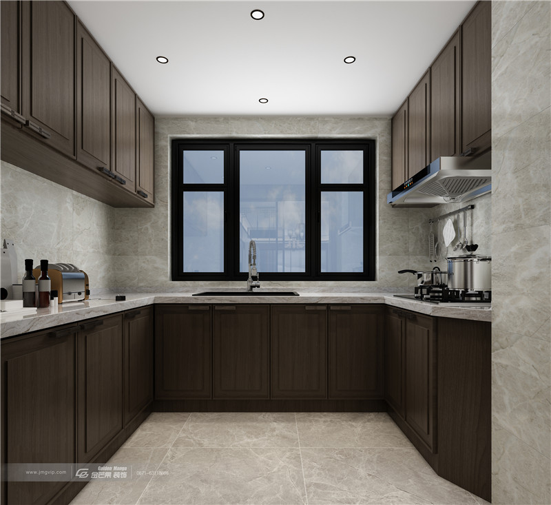 開放式餐廚,將西式的奢與中式的雅結合,銜接人間煙火氣,一邊斟茶弄影,一邊食香裊裊,在交流互動中,體現設計的精妙。