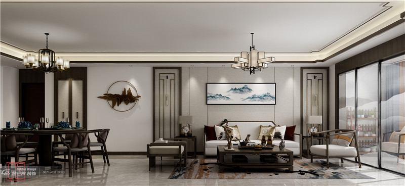 穿插其中的山水畫元素,在靈動與雅致、現代與傳統之間游刃有余,讓家居格調更加豐富有層次。