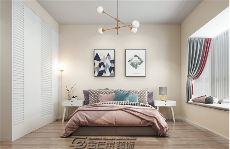 淺淺的粉色,既不會夸張,又能比較好的營造甜美溫馨的氛圍。顏色鮮亮的抱枕,活潑的裝飾畫,溫馨的氣氛適合舒睡,卸去一天的疲憊,進入甜甜的夢鄉(xiāng)。灰粉色調(diào)的飄窗,既有格調(diào),又能帶給人通透明亮的感覺。
