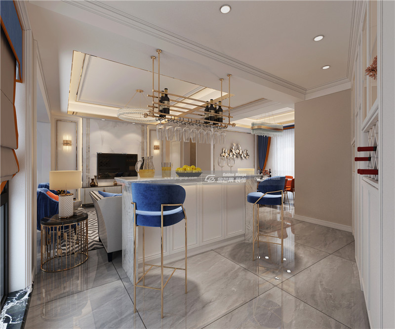 潤城五區136m2輕奢風格裝修丨只一眼,便墜入到優雅的藍色暢想里