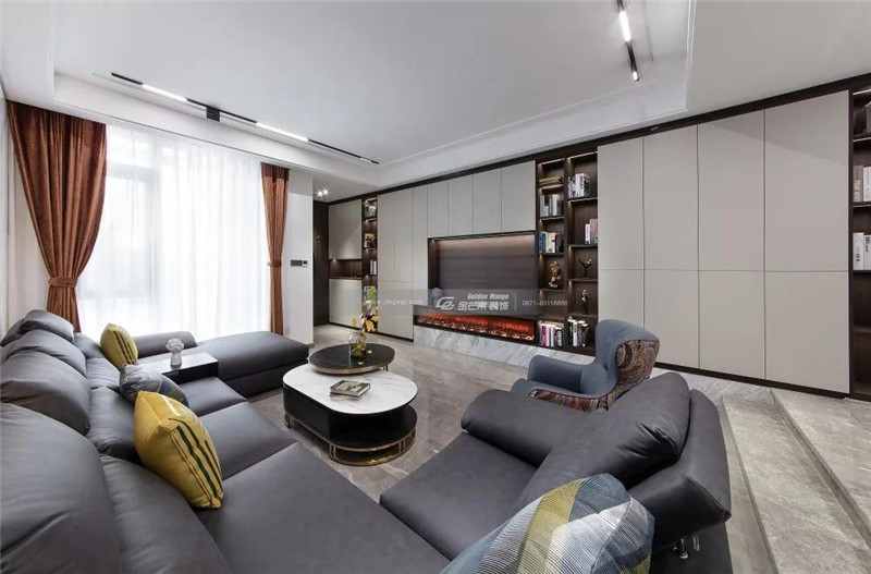 業主周先生是個很注重生活品質的人,大家看到客廳柜體上設置了很多開放格,除了增加空間層次感,業主還購置了很多有意思的小擺件,這么熱愛生活,當然也不會被生活辜負啦~