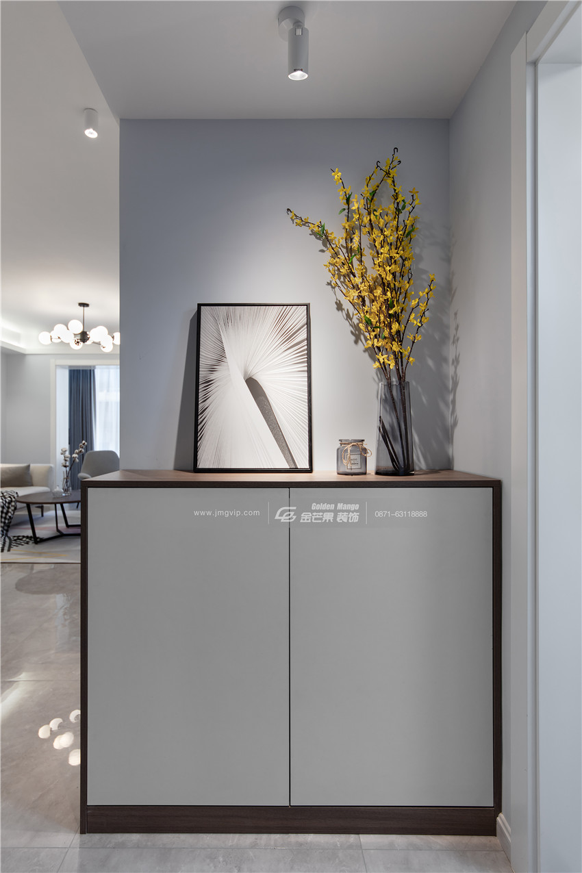 一進門,簡約大方的玄關在輔助光源的加持下呈現溫馨慵懶的家居氛圍,隨手放下手中的瑣碎,就此將繁雜隔離在外。