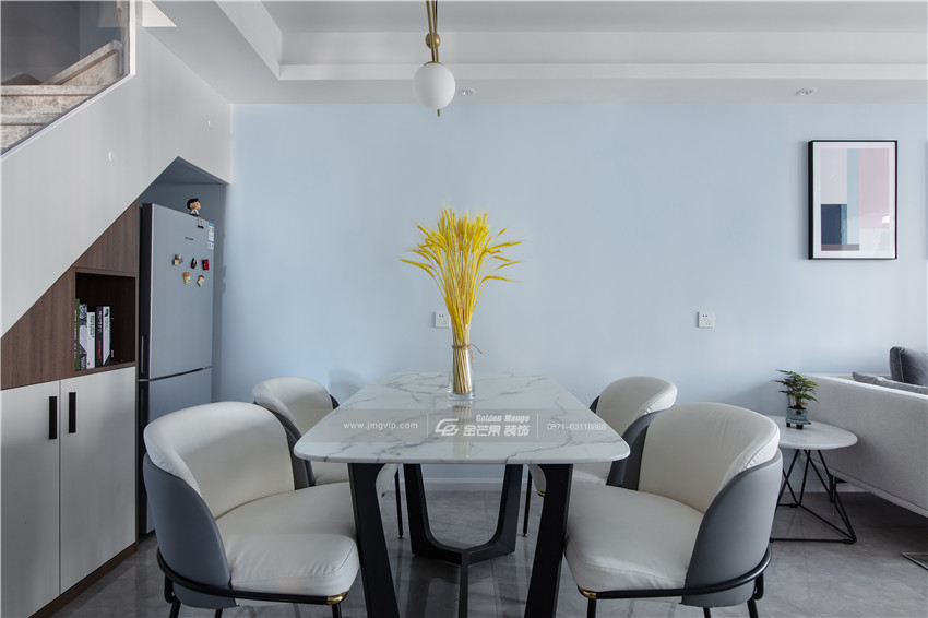 開闊的空間,讓客廳和餐廳互動感變得更強,吃完飯在沙發上小憩,都是觸手可及的幸福感。