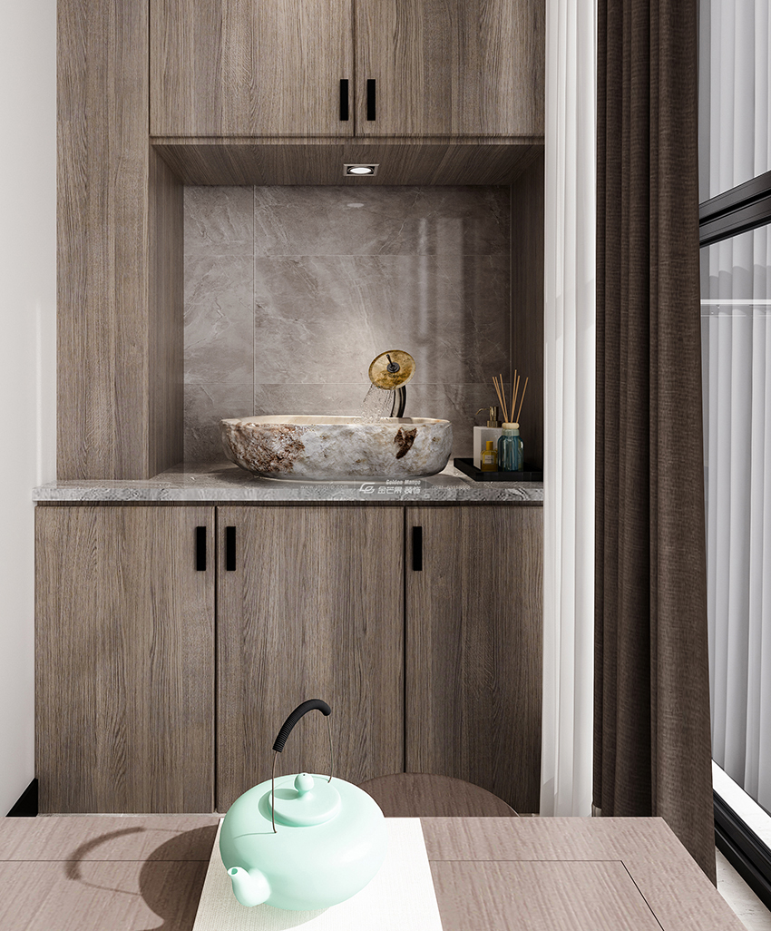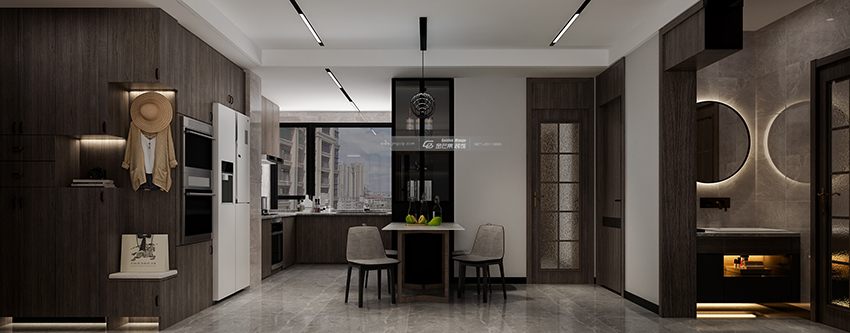 大面積木質(zhì)和大理石材的組合,搭配得恰到好處,彰顯層次感和品質(zhì)感,一邊是木材的溫厚,一邊是石材的精致與高級(jí)感,生活得品質(zhì)感自在彰顯。