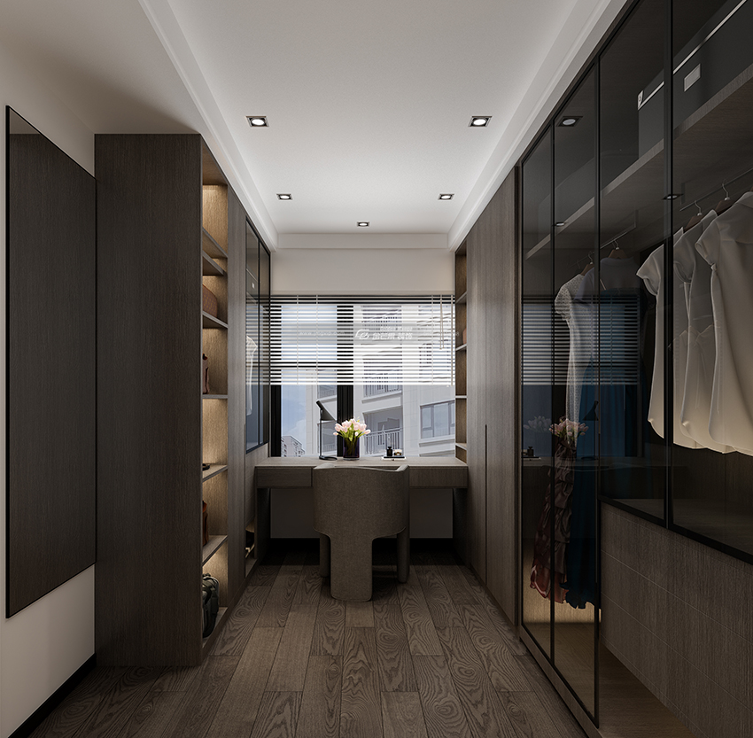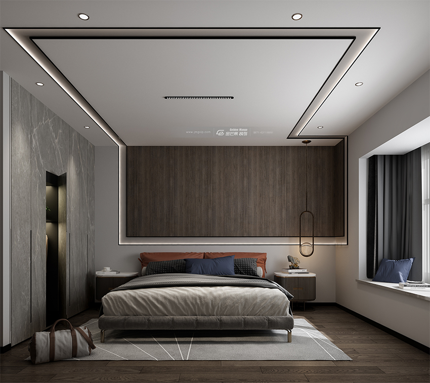沒(méi)有過(guò)多裝飾,僅用一些燈帶線(xiàn)條的處理就讓房間變得有品質(zhì)和設(shè)計(jì)感,通過(guò)材質(zhì)、顏色的搭配營(yíng)造一個(gè)適合舒睡的適意空間。