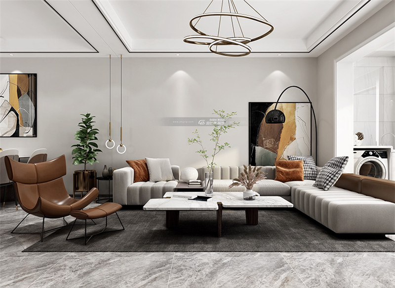 干凈的黑色和白色,呈現(xiàn)一種簡單的高級感,中間點(diǎn)綴一些明亮的家具配飾,增加溫暖的氛圍。