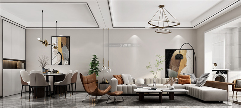 開放的客餐廳,大氣簡潔的設(shè)計(jì)讓家居空間變得自由且氣質(zhì),中間用燈飾作為區(qū)域的分隔,讓客餐廳既有互動也區(qū)別開來。