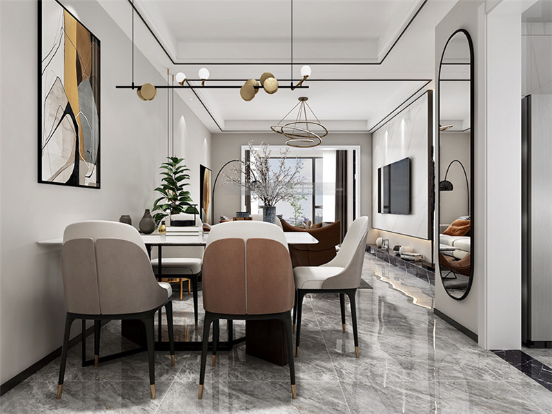 個(gè)性的燈飾營造輕奢的氛圍,用彰顯品質(zhì)感的家具和優(yōu)雅的顏色打造優(yōu)雅、氣質(zhì)的用餐環(huán)境。