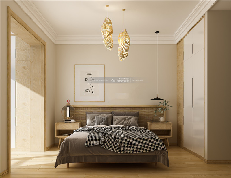 暖黃的色調和原木太搭了,淡雅穩重的布局,中規中矩的方格直線,使得房間既實用又充滿別致感。柔和的色調傳達著一種純粹、本真的空間美學。