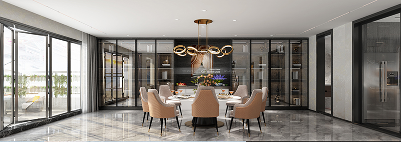 玻璃通透朦朧的質感營造出光影的藝術與氣質,通透的材質不僅起到擴大空間的視覺效果,也是儀式感、高級感的顯現。