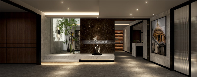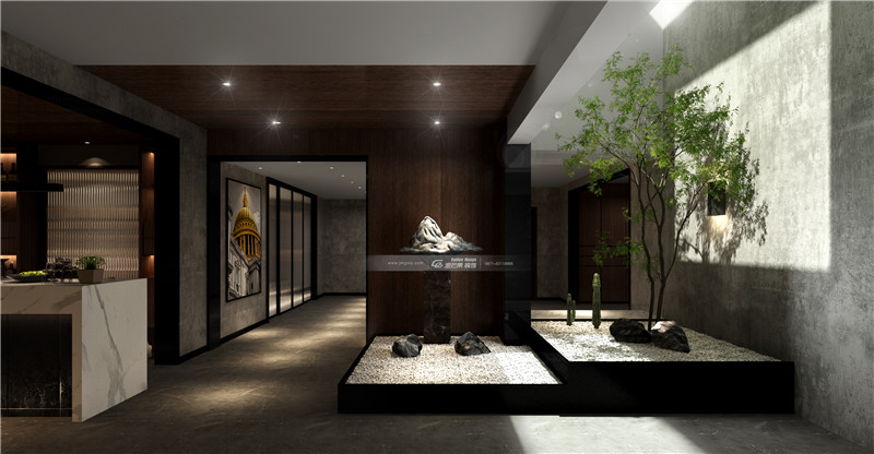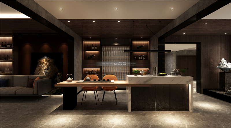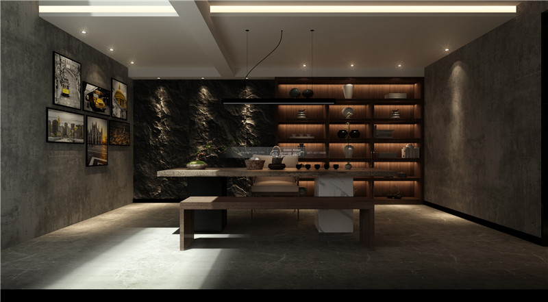石材搭配不規則鋼材,加以輔助光源,光影之間交互的光線,本真、自由的空間氛圍,彌漫純粹、自由的空間感受。