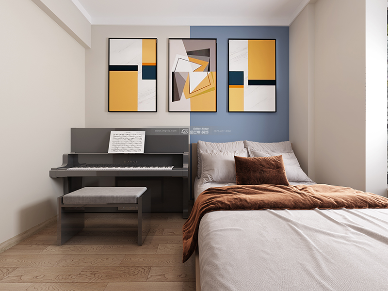 用黃色的裝飾畫增加空間的活力,活潑的空間氛圍讓空間變得溫暖靈動(dòng)起來。整體暖暖的色調(diào)有個(gè)性又溫馨舒適。