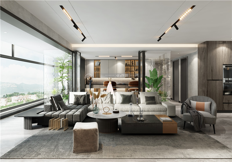 一整面墻的落地窗,將光線很好的放入室內,將自然優勢與空間設計相結合,讓本就高級的空間更顯大氣和通透。