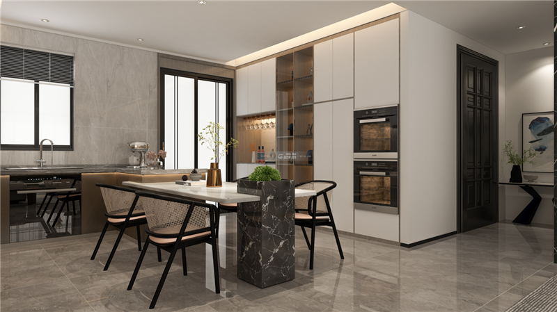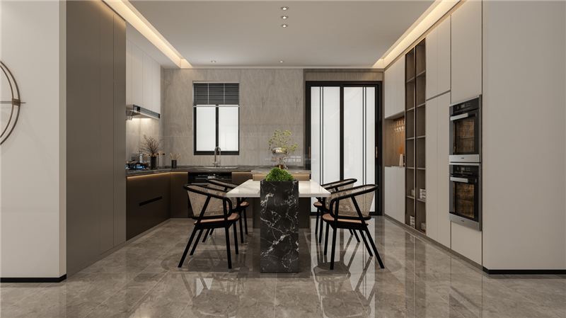 簡潔、大氣的氛圍,白色醞釀出高級的質感,加入一些金屬線條增加精致的高級感,讓餐廚空間亦動人心。