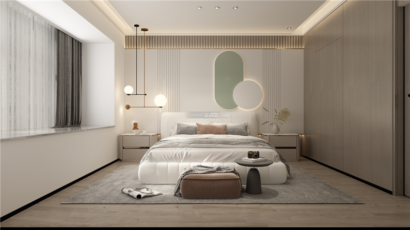 淺淺的綠色呼應整個空間,淺淺的木色和溫柔的顏色搭配讓整個空間充滿溫柔、舒逸的氛圍,在這種簡約、清新的氛圍下,連夢都是軟軟的,甜甜的。