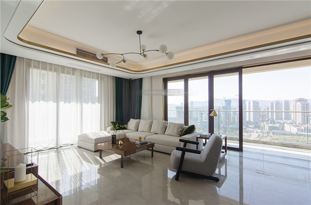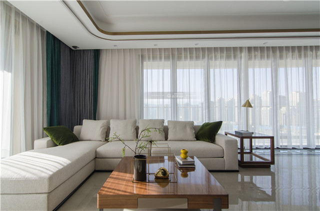 白色棉麻沙發帶來舒適的質感,打造慵懶、愜意的家居氛圍。白色棉麻和超大落地窗搭配白色紗簾, 仙氣飄飄的感覺讓生活也隨之干凈了許多,微風一起,白色紗簾被輕輕吹起,滿屋都是純凈、清新的味道。
