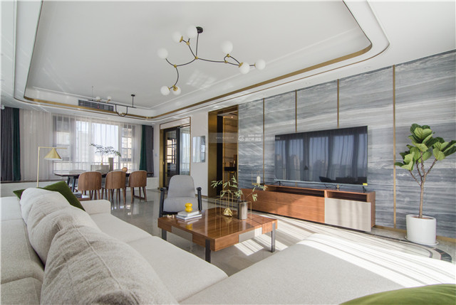 大理石背景墻,加入金屬線條點綴,輕奢的品質感讓家更加有儀式感。