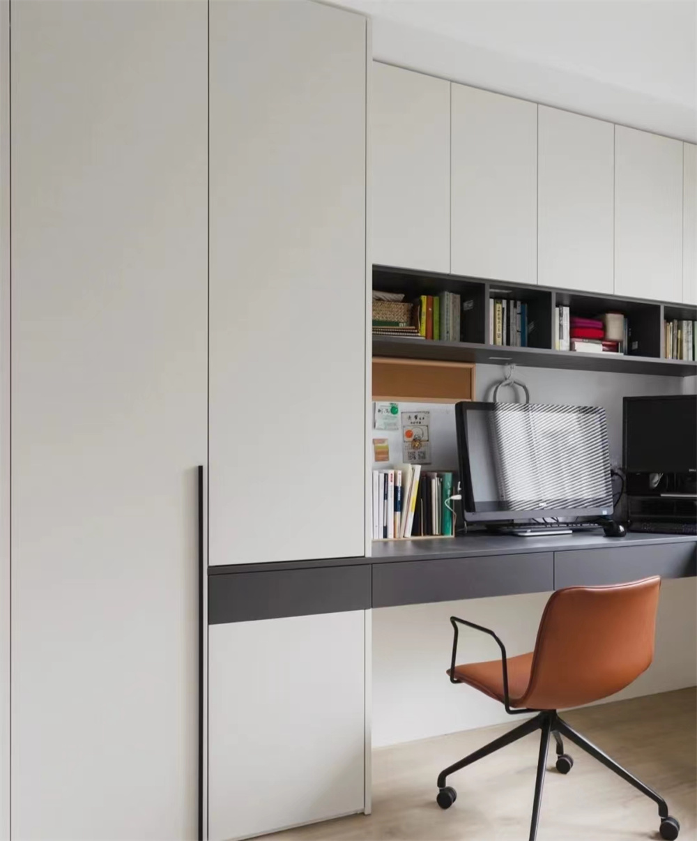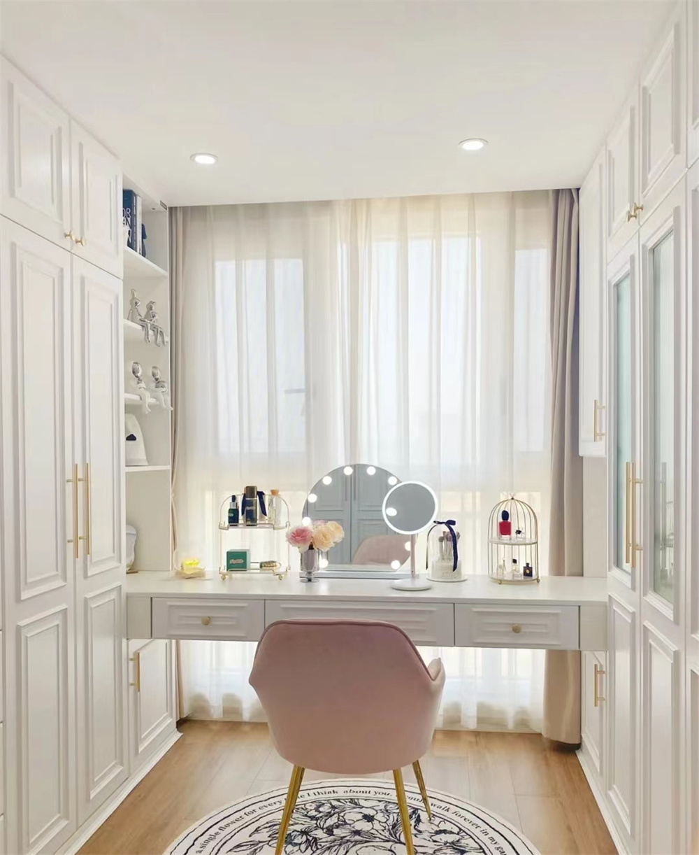 沒有多余的空間設(shè)計(jì)衣帽間,但又不想遺憾錯(cuò)失,該怎么辦呢?幸福金芒果裝飾教您一個(gè)小妙招,那就是大膽嘗試不同的功能區(qū)結(jié)合,比如:書房空間、化妝空間等,可以將書房區(qū)或者化妝區(qū)置入衣帽間之內(nèi),根據(jù)使用側(cè)重點(diǎn)去設(shè)計(jì)安排功能占比,實(shí)現(xiàn)空間功能合二為一!