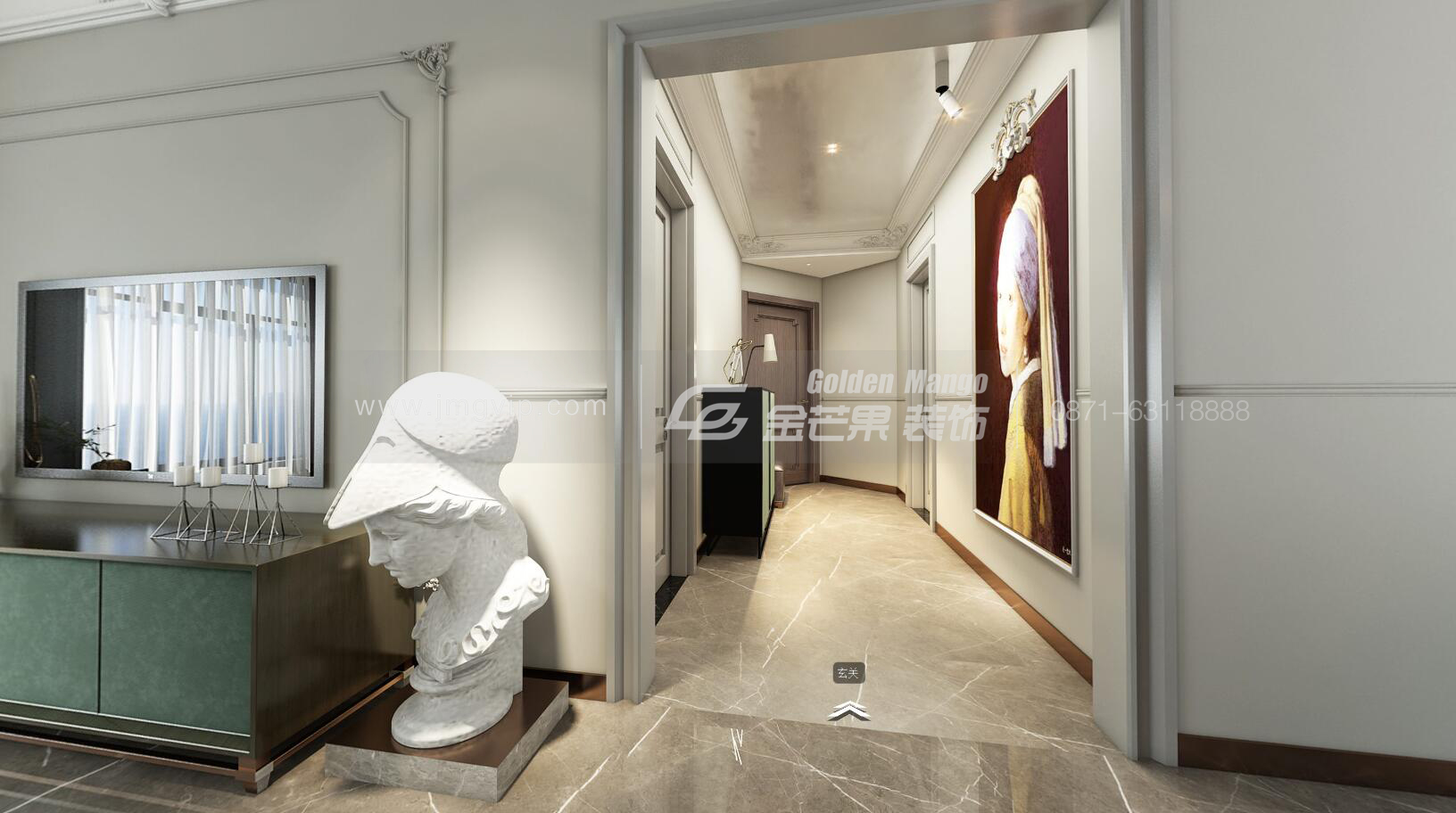 所以選擇了體量小的鞋柜和換鞋凳,同時選用了大幅法式畫裝點,既法式韻味十足又時尚大氣。