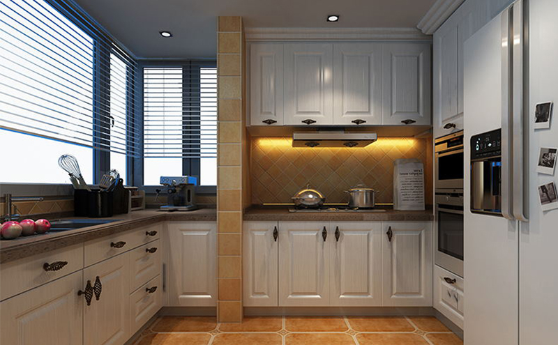 廚房是水比較多的地方,長期接觸木材可能會(huì)潮濕發(fā)脹、發(fā)爛了的,要注意選擇防水效果好一點(diǎn)的材料。